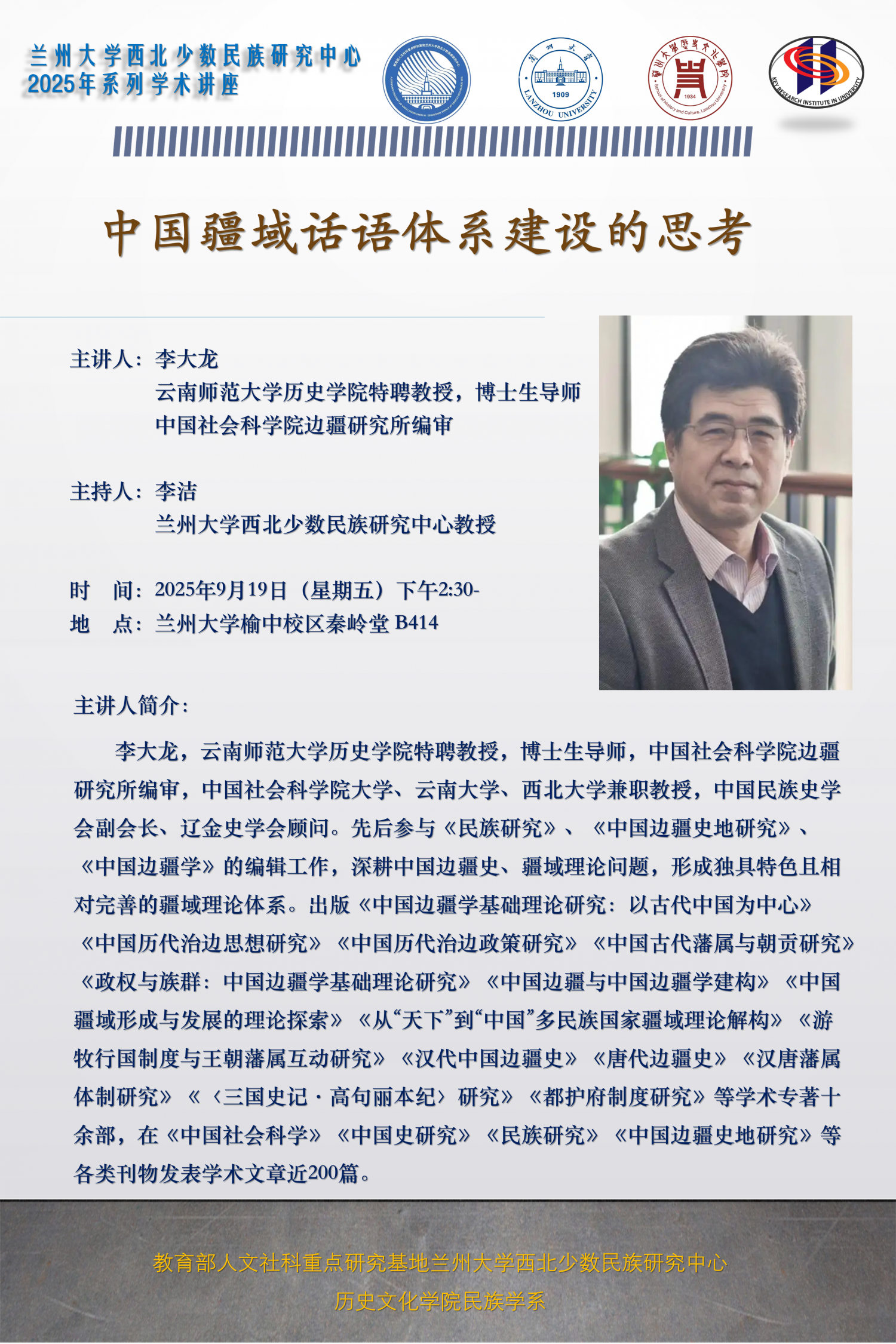 【讲座预告】李大龙教授将应邀赴榆中校区做线下讲座