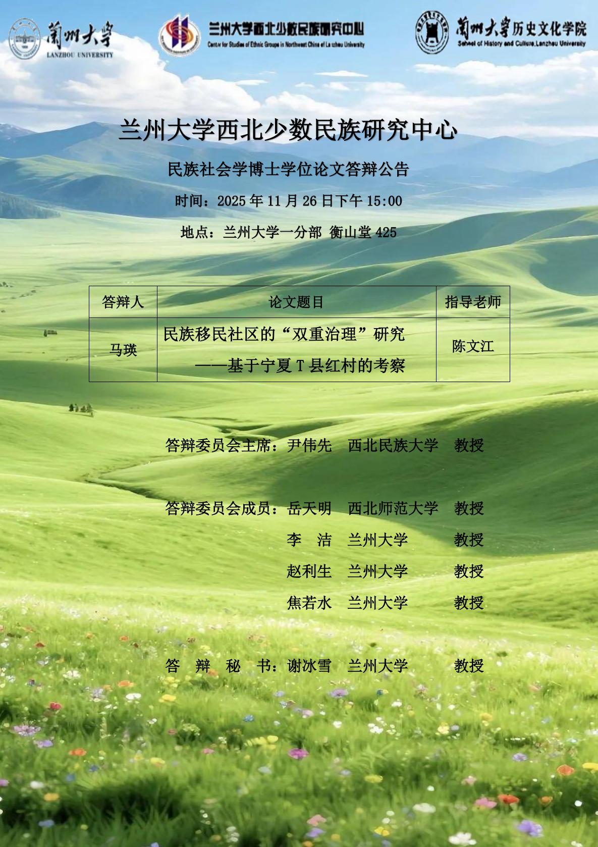 - 2025-12-01 2025年下半年博士学位论文答辩公告(六)
