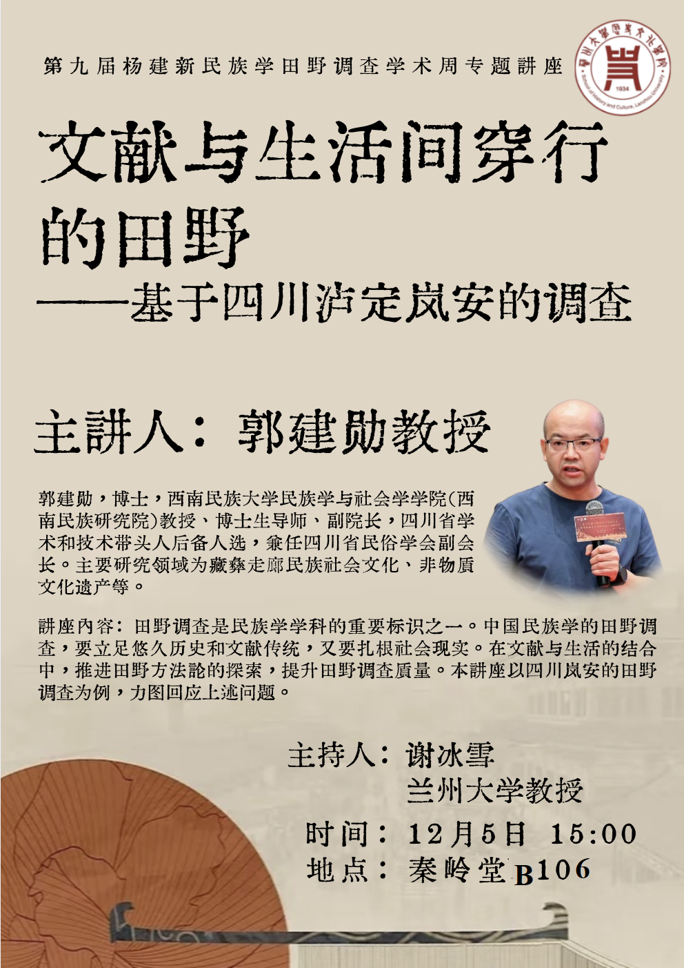 - 2025-12-01 【讲座预告】西南民族大学郭建勋教授将应邀莅兰做学术讲座